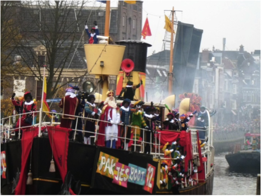 Non-Dutch people seem to have a problem with the tradition of Sinterklaas, which can be really confusing to Dutch people. Black Pete was never meant to be racist or even discriminative; however, people perceive him that way. To say that the problems with this tradition are something of the last decade, or maybe even the last century, would be incorrect, as discussed above with the complaints from the pastor from Gouda. Even a simple search online would indicate that different cultures living in the Netherlands don’t always appreciate or understand our tradition (Helsloot 1996; Simons 1996, 1998; Grimes 2005). It seems that at any given time in the history of the tradition, someone seemed to have a problem, and many changes have been made to accommodate those that do not agree. For example in the late 19th to early 20th century Sinterklaas was accompanied by one male Black Pete (Schenkman 1907). He is now accompanied by hundreds of Petes, both male and female. Not only has Pete multiplied, there is now a Pete-School, where the Petes learn how to wrap presents and throw candy. There has even been delegation, as there is a navigation-Pete, a package-Pete, a pepernoten-Pete etc. In the end it turned out that it was not the UN that declared an investigation, but people working within a voluntary department of the UN who do not agree with the tradition and support the idea that ‘Zwarte Piet is racisme’ (Black Pete is racism). It started a big debate in the Netherlands of huge proportions, as the Facebook page ‘Pietitie,’ to save Black Pete reached over 1 million likes within 24 hours which is quite a feat for a country of only 17 million people (RTL Nieuws, 2013). This year, the Saint made his normal entry into the country with his Petes, the only difference being that they were not wearing their big hooped earrings. Slowly but surely the tradition is changing, which indicates that the Netherlands accommodates all cultures that reside there, and still wants to hold strong to the values and principles of tolerance which made the country such an international refuge and success in the international trading market.