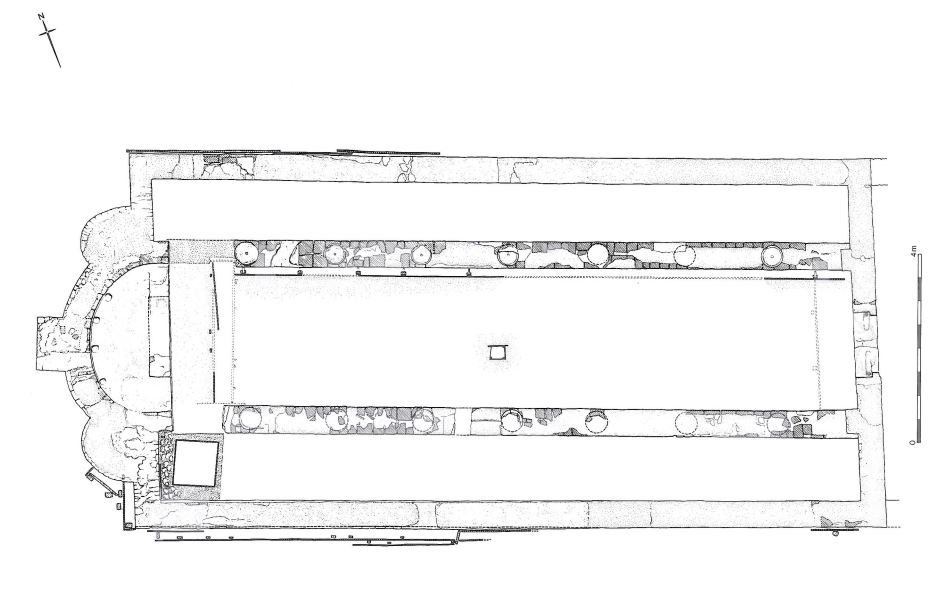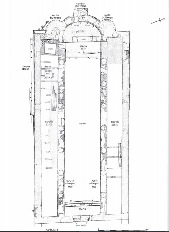 The layout of the temple needed to account for the unstable ground during construction and also in the late third century, when the building suffered a collapse of the south western ceiling. Instability was caused by ground water and subsidence due to the temple’s proximity to the stream. The construction of the temple was fairly standard in that the foundations, walls, buttresses, apse and sleeper walls were constructed with mortar, ragstone and tile. Mortar was placed first with ragstone above, then ragstone and tile courses (Figure 8) (Shepherd 1998, 58-59). The effects of the ground’s instability were signalled by the sleeper walls and apse constructed with three buttresses (Shepherd 1998, 58). The building was 58.5 feet long by 26 feet wide. Like many Mithraea, the temple was orientated east to west. There was also evidence of wooden planks in the north and south aisles which could have been benches (Grimes cited Shepherd 1998, 63). Many other Mithraea have benches as well; Carrawburgh, Rudchester, and on the mainland, Nida (Heddernheim) are some examples (Figure 9). Significant changes occur in Phase III (late 3rd century CE), the collapse, the columns were removed, the cult icons were buried in Floor 5 (Figure 6), and the west end was rearranged (Figure 6) (Shepherd 1998, 227). In the early fourth century the layout became more open; evidenced in Floor 6a by a slab with INVICTO inscribed on it, dating 307-308 CE (Figure 10). Floor 3 raised the level to the top of the steps to the nave signalling the end of the sunken nature and by Floor 5 the well was covered (Shepherd 1998, 72, 225). Whether this signalled the end of the temple functioning as a Mithraeum is debatable. The Bacchic sculptures and votive offerings suggest that it was no longer a Mithraeum as argued by Henig (1998, 230).
