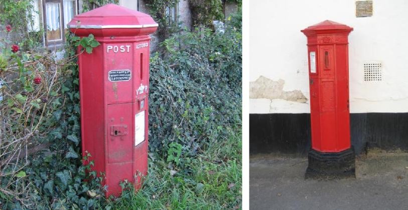 The Carlisle square pillar box is long departed and differed markedly to this one (above left) in Dorset dated 1856, made by John M Butt & Co of Gloucester which is the oldest still in use on the mainland. On the right is one of a pair in Framlingham, Suffolk, of the same year made by A Handyside of Derby for the Eastern District. Interestingly, Districts had a lot of autonomy over design and engaging foundries. The first London boxes were not popular (short, square and with notice plates too low to read and often obscured by dirt splashed from the street). Within a year they were gone and replaced by an ornate pillar design, much more pleasing to Victorian aesthetics. A bit like iron mushrooms, the Victorians then saw a range of pillar boxes sprouting until we arrived at the design that most of us are familiar with. Some are: