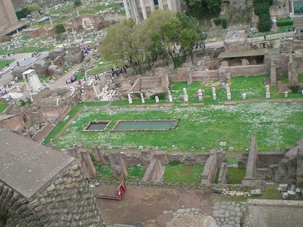 If one wishes to see the link between politics and religion in Rome, there is evidence enough in the buildings lining the Via Sacra and in one of the purposes for which the road was used. The Via Sacra is lined with temples and there are even more visible from the road itself, for example the Temple of Vesta and the Temple of Castor and Pollux (Figure 1). There were also several political or administrative buildings. The Basilica Julia, used for civil law courts, government business and banking, is in between the Temple of Castor and Pollux and the Temple of Saturn and the Senate House is adjacent to the Arch of Septimus Severus. Whilst all of the temples may not have been completely visible when the buildings in the forum were intact, there would still have been a sense of being surrounded by a combination of religious and political buildings. There is also evidence for the connection between politics and religion in the dual uses of some of the temples. The Temple of Saturn was not only used as a temple but also as the storage place for the bronze tablets, on which the laws of the state were inscribed, and as housing for the national treasury (Grant 1970, 81). The social order of the Knights paraded annually in front of the Temple of Castor and Pollux and balloting for official votes was held here from 145BC (Grant 1970, 86). The House of the Vestal Virgins also had a dual purpose as it acted as a safe deposit for public and private documents (Grant 1970, 61).