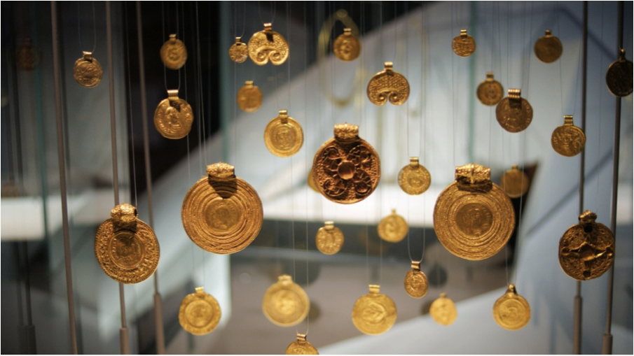 Number 3: Gold pendants displayed at the Museum of Antiquities in Leiden, the Netherlands. Photographer: Rianca Vogels, University of York (69 points)