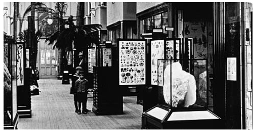 The central hall of The Natural History Museum in London in 1924 (Figure 2) and the interior view of the Botany Gallery in 1911 (Figure 3) are similar displays to the modern-day PRM. Both of which contain a number of black-framed cases containing natural artefacts. This therefore shows how other museums have changed their image while the Pitt Rivers Museum has remained with the customs of the early 1900s. However, this is not to say that the PRM has not adapted over time. While the PRM does not incorporate 3D technology, digital learning, electronic display, interactivity nor hand-held guides within its physical facility, it does have a very large web presence especially in relation to social media, namely Twitter and Blogger.com. The museum also uses Quick Response (QR) codes which can be scanned using a mobile device, offering more information concerning a particular object, other archival records and directing visitors to other web pages that may be of interest. This is a very useful tool for conserving space, especially as there is an evident lack of it at the PRM. In addition, the museum is also featured on the 'Oxfords University Museum’ app and their website contains audio and video podcasts produced by the PRM in collaboration with local film-makers, schools and academic experts from all around the world which provide an insight into the inner workings of the museum.