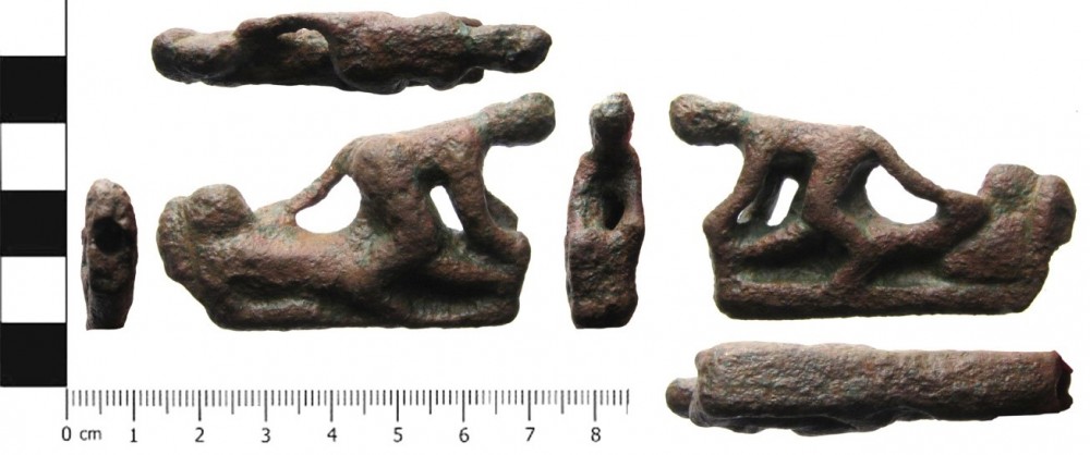 Not being a field archaeologist, I have never found any artefacts myself, except for spotting pottery lying on the surface of a field at a Deserted Medieval Village. (As it was a Scheduled Ancient Monument, I left it there untouched!). However, one great perk of my job is that I get to handle thousands of archaeological finds. Last week I recorded a Bronze Age socketed knife (database number SWYOR-CAF110), and this week a copper alloy beaded torc has been handed in. The most famous find I dealt with was probably the Vale of York Hoard (SWYOR-AECB53), which became known as the “most exciting Viking hoard discovered in the last 150 years”. It was my responsibility to deliver it safely to the British Museum, all £1,000,000 worth of it! However, the most exciting artefact was probably the Roman erotic knife handle (SWYOR-374234) which is very rare, and is particularly difficult to research on the internet!