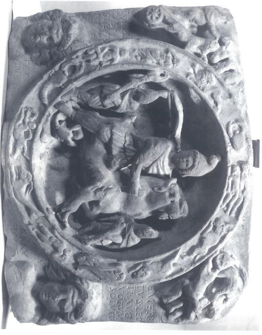 In London, the Mithras Tauroctonos with the zodiacal cycle was dedicated by Ulpius Silvanus of the II Augusta, apparently appointed at Orange (Figure 13 and 14) (Clauss 2000, 89). This scene was found at many Mithraea and it contains astronomical symbols, which were well attested at other sites. A relief found in Bologna (Figure 15) of unknown provenance contains the planets in the reverse order of the weekdays; other reliefs with astronomical symbols have been found in Sidon, Dura Europos, Brigetio (Szony, Hungary) and Rome (Figures 16, 17, and 18) (Clauss 2000, 87).