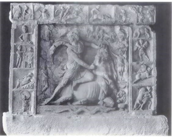 Mithraism was a malleable and tolerant religion which revealed the influx of other deities and religions in their iconography. Some depictions of Mithras portray him with a bow, hunting; a scene not often seen, if at all in Britain. Scenes of hunting and Mithras were found mainly in the areas of the Rhine, Danube and the Near East at places such as Dura Eruopos (Figure 20), Neuenheim (Figure 21), and Osterburken (Figure 22) (Vermaseren 1963, 90). Location was a factor and Mithraea were located near other shrines, Albachtal of Trier for example, suggesting that there might have been friendly relations if not assimilation (Henig 1998, 232).