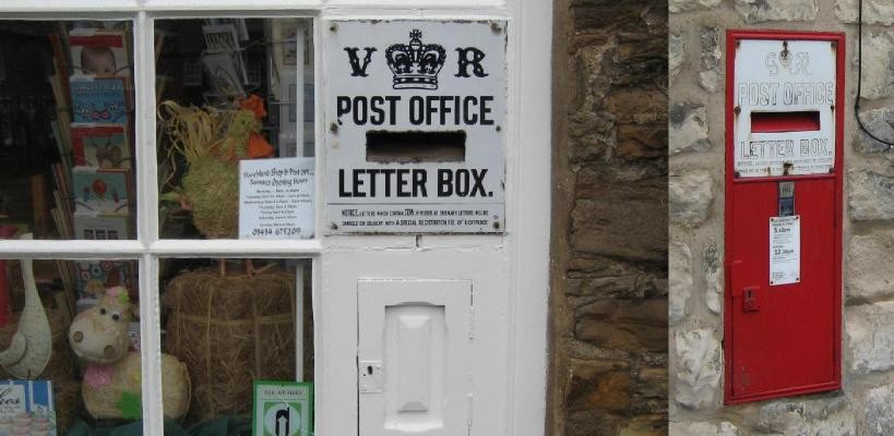 So is this really archaeology or just train spotting? For some it is just an absorbing hobby (for which you don't have to have a tartan thermos and anorak) but our post boxes can give some interesting pointers to the way lives were lived. Who designed the boxes and why were certain styles adopted? The process was really rather muddled, especially for the wall boxes in post offices. Those were not standardised until the 1880s, and until 1895 postmasters installed them at their own expense. (Will this be a problem for Dorcas Lane in Candleford?) An example which has survived due to the insistence of the now retired postmistress at Blancland, Durham, is shown below alongside a Ludlow, the type of box which replaced them. Unlike ordinary wall boxes, the Ludlows have attractive white enamel plates (with stern directions about what may be posted and fines) as well as the collection-time plate. Many Ludlows remain as active boxes though their parent post office may have closed. So here is a useful clue in determining the former use of some buildings. The same can apply to large wall boxes that once served municipal buildings, banks or cooperative societies.